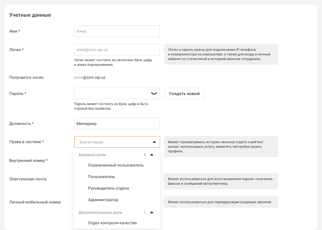 Ниже расскажем подробнее про каждую роль в АТС и возможности ее гибкой настройки.