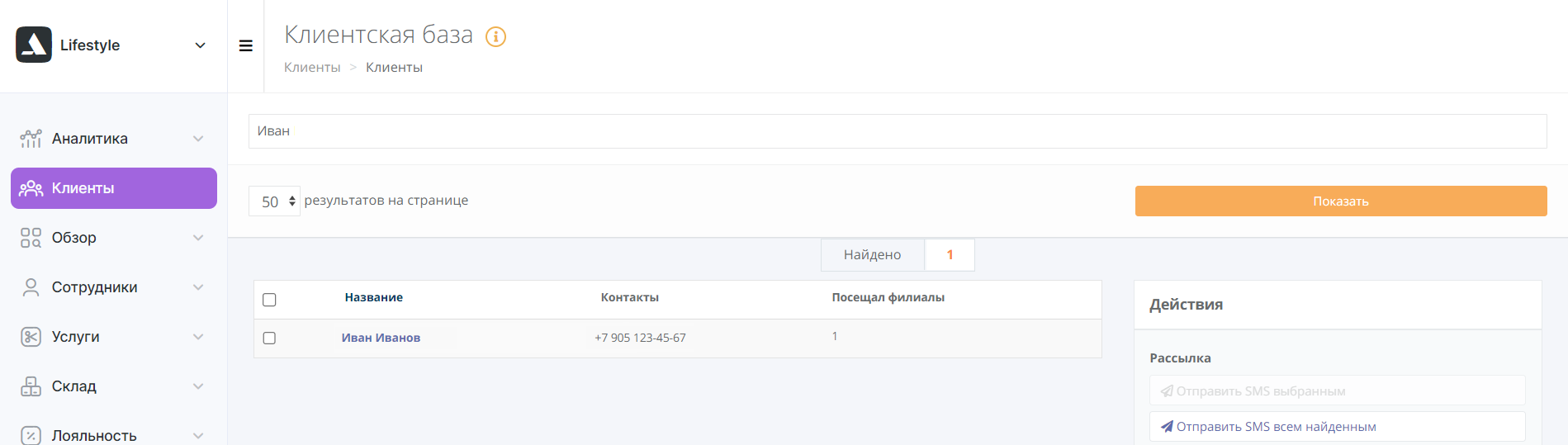 Если вас интересует конкретный клиент, выберите «Сеть» и перейдите в раздел «Клиенты». В поисковой строке введите имя или фамилию. Нажмите на кнопку «Показать».