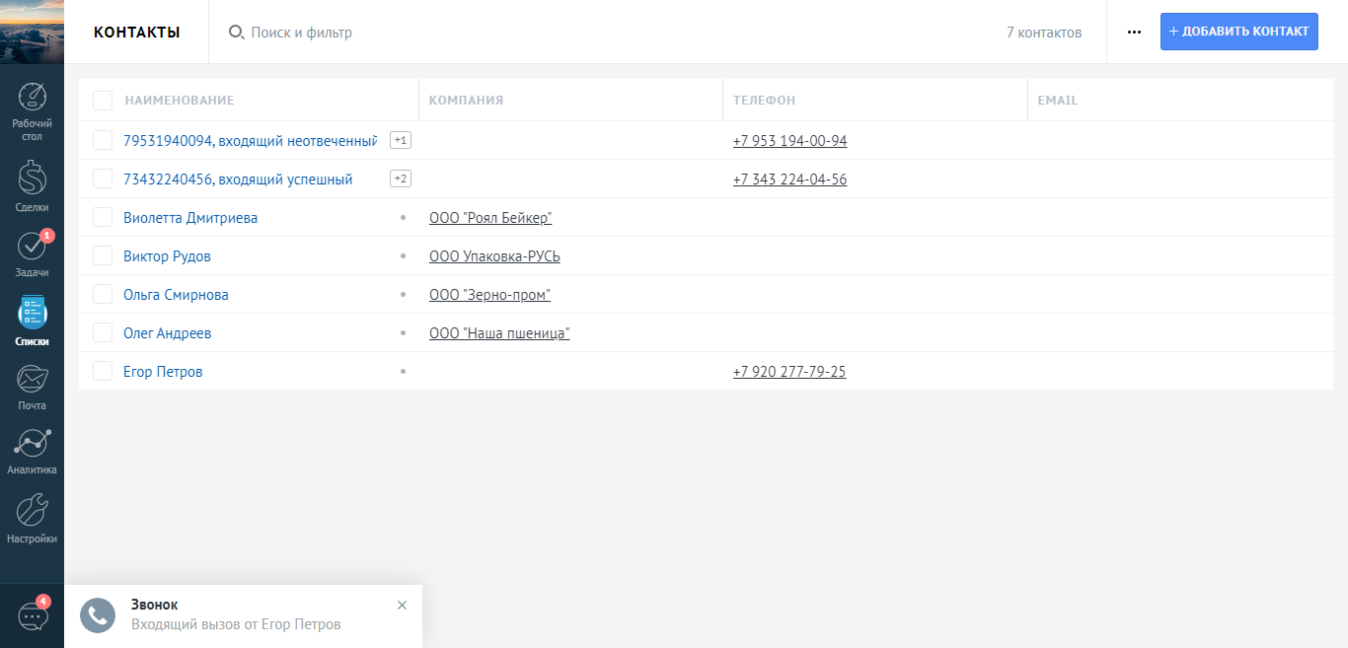 Одно из главных правил успешного бизнеса – фиксировать каждый звонок и каждого позвонившего. Даже если ваш менеджер не успел или забыл создать контакт или сделку, вы все равно не упустите этого клиента. Необходимая информация о контакте и сделке сохранится в amoCRM автоматически, менеджер в любой момент может вернуться к ней и продолжить работу с клиентом.