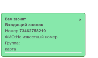 В левом нижнем углу появится всплывающее окно. Если по номеру телефона удалось определить клиента, вы увидите его ФИО, категорию и другую информацию.
