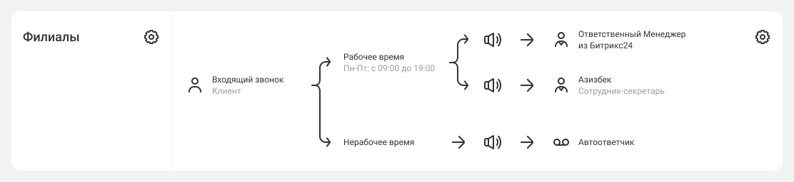 Если вы закрепляете за клиентами персональных менеджеров, соединяйте их автоматически – клиенту не придется слушать голосовое меню, общаться с секретарем или другими менеджерами. В этом случае как только в вашу компанию поступит звонок, АТС распределит звонок на сотрудника, ответственного за этого клиента.