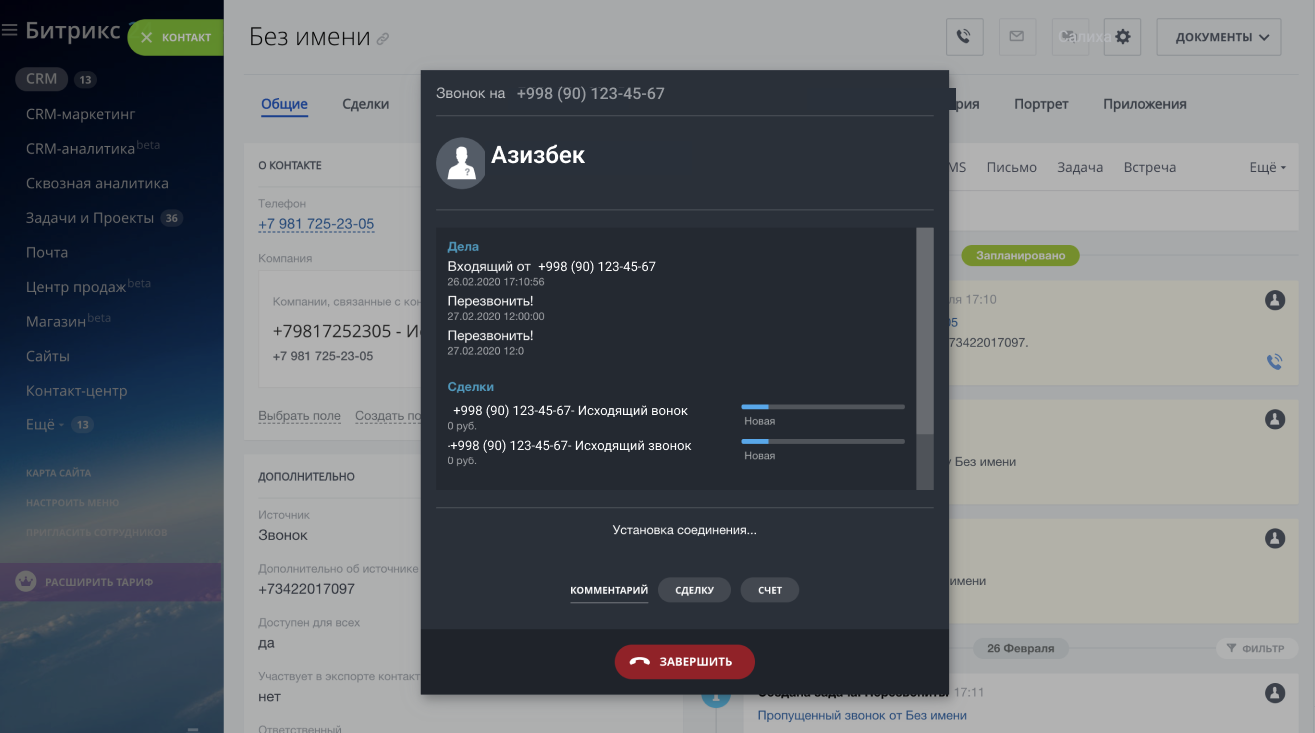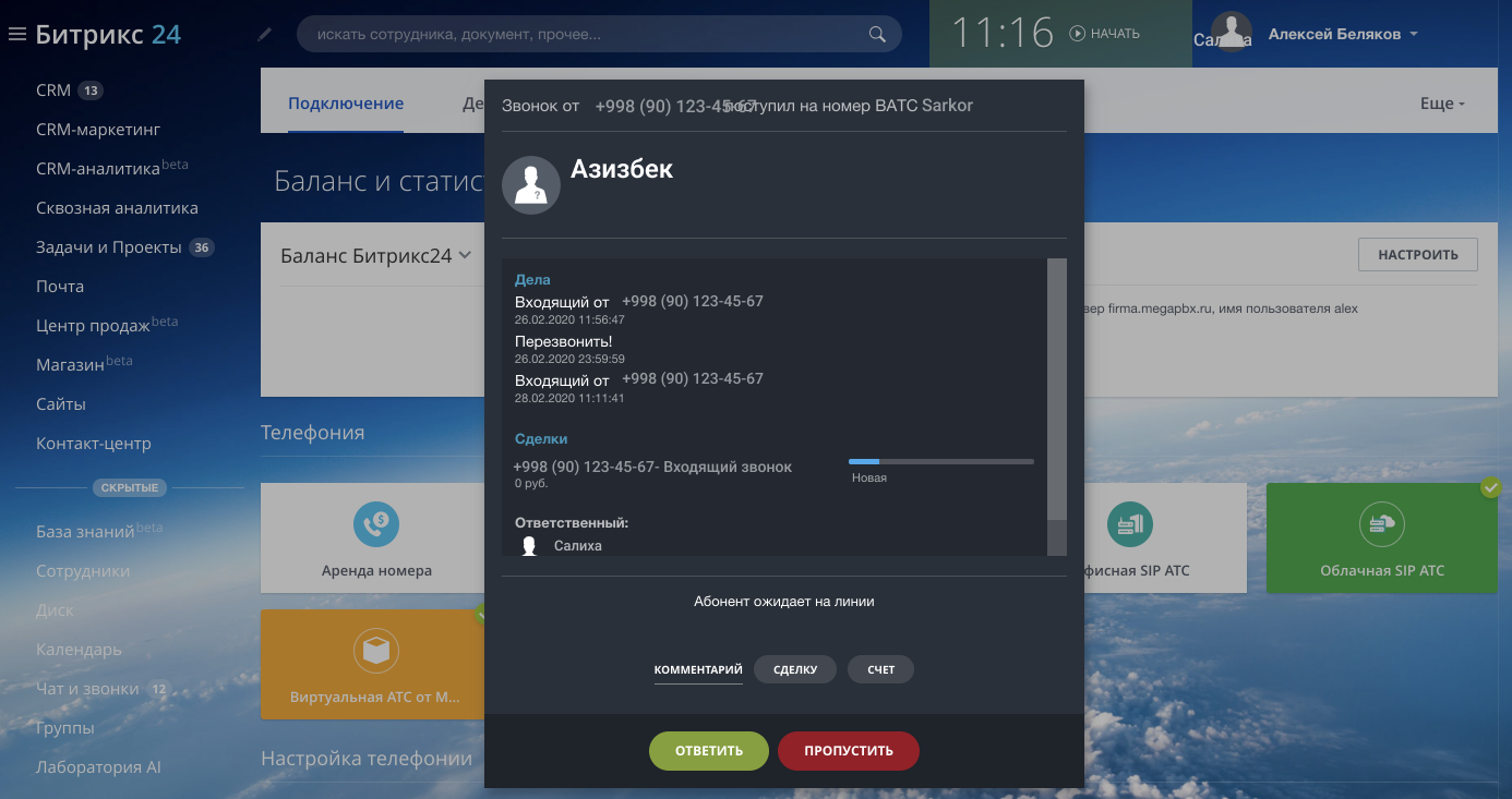 Теперь все вызовы на этого сотрудника будут поступать в интерфейс Битрикс24.