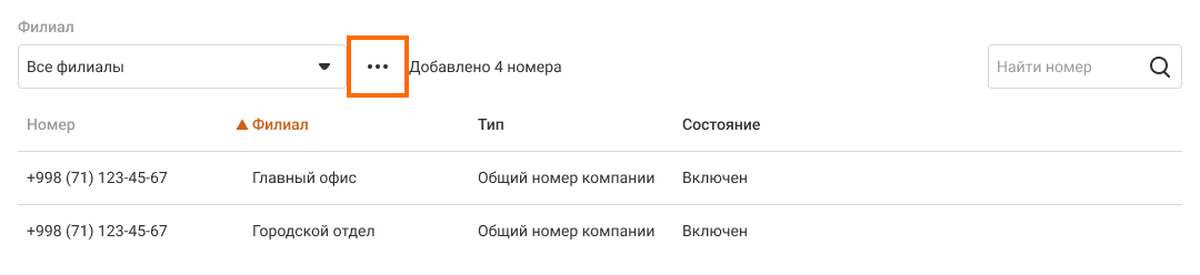 Как добавить в филиал несколько номеров