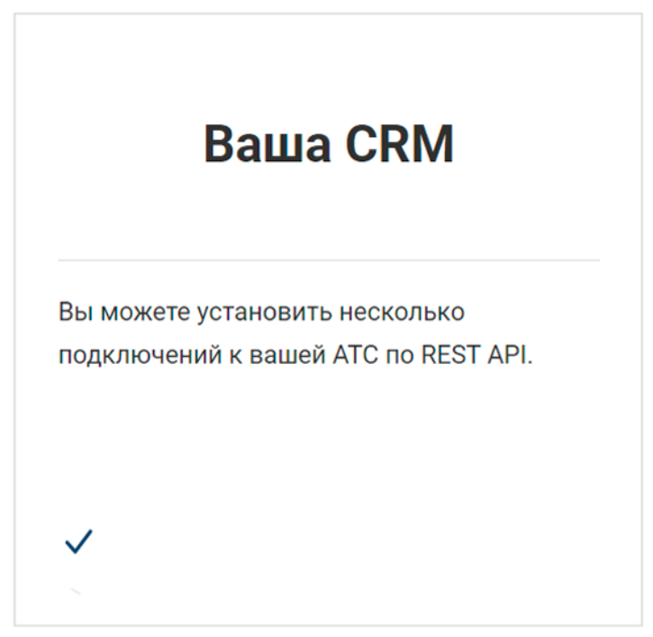 1. В настройках Облачной АТС зайдите в раздел «Интеграция с CRM», пролистайте вниз и найдите карточку «Ваша CRM».