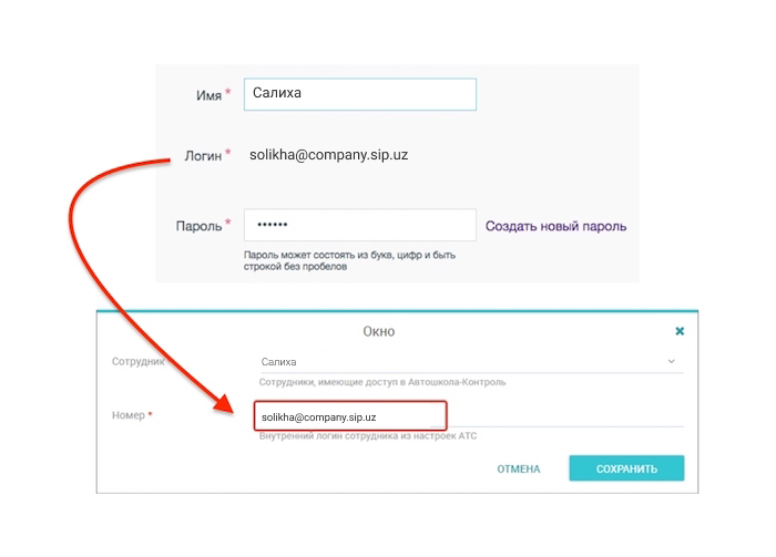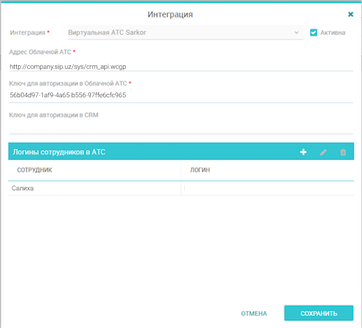 Далее нам необходимо связать Сотрудников из Автошкола-Контроль с их логинами в Облачной АТС.