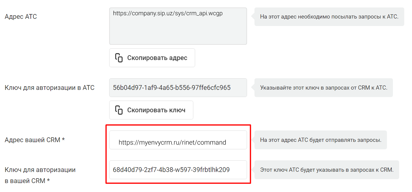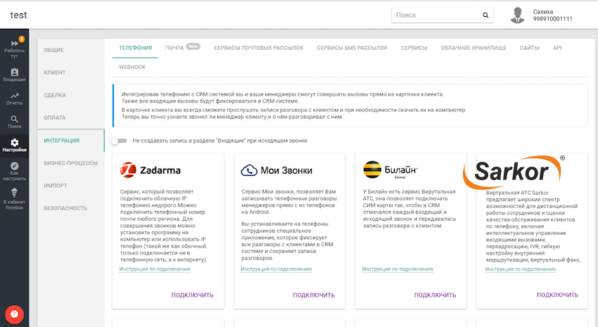Интеграция EnvyCRM и Облачной АТС