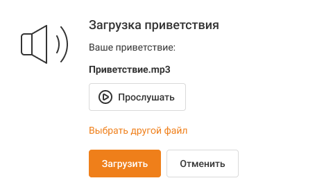 Рассмотрим, как загрузить файл в каталог собственных сообщений на примере добавления своего приветствия на номерах. Аналогичным образом можно загрузить свой файл в любом из перечисленных выше разделов.