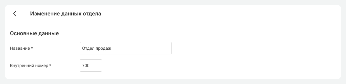 В открывшемся окне вы можете изменить имя отдела и внутренний номер.