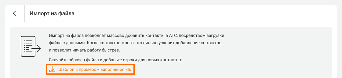 2. Скачайте шаблон файла Excel с примером заполнения списка контактов.