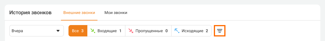 Нажмите на кнопку «Фильтры», чтобы открыть панель фильтров. С ее помощью можно отфильтровать звонки не только по клиентам и сотрудникам, но и:
