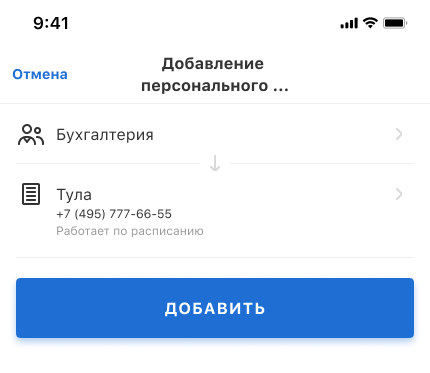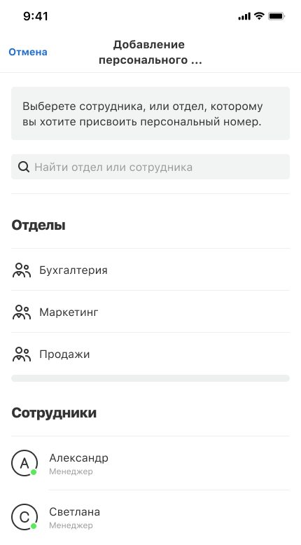 Добавление персонального номера для сотрудника или отдела