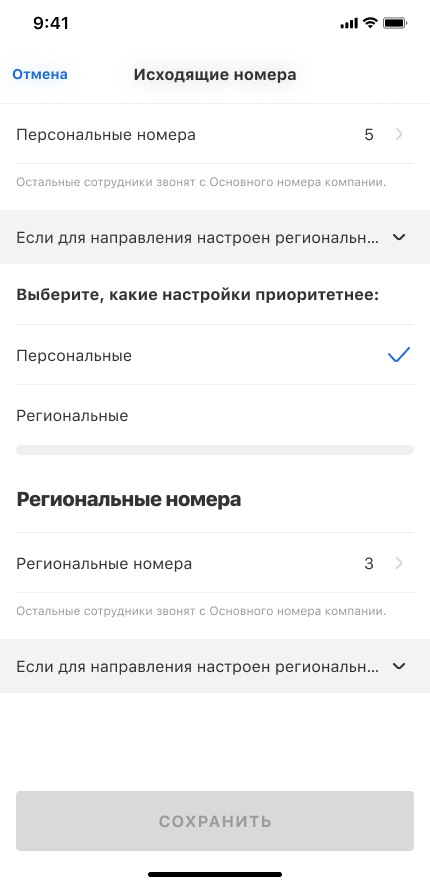 Если ваши клиенты из других регионов звонят сотрудникам на персональные номера, то могут возникать такие ситуации: клиент сохраняет номер менеджера, но затем менеджер звонит ему с незнакомого номера (регионального исходящего) — клиент думает, что это спам-звонок, и сбрасывает. Чтобы этого избежать, вы можете изменить приоритет определения исходящих — при наличии у сотрудника персонального исходящего номера именно он будет определяться у клиента.
