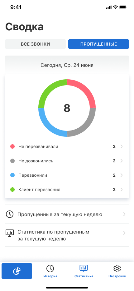 - анализировать статистику звонков и быстро реагировать на пропущенные.