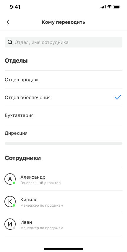 Выберите сотрудника или отдел.
