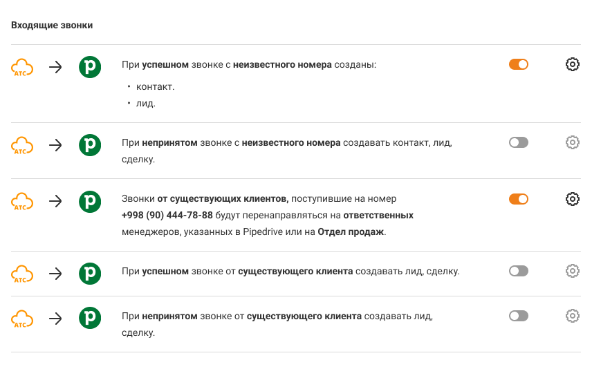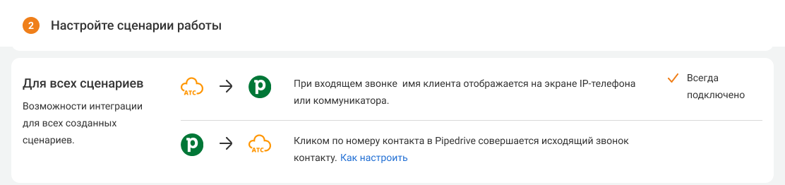 После того, как настроите все необходимые сценарии, начинайте пользоваться интеграцией Pipedrive с АТС.