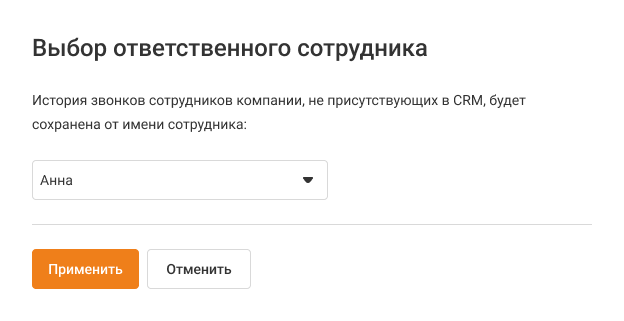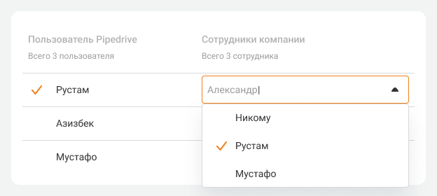 Если в будущем вы добавите новых сотрудников, не забудьте сопоставить их профили в АТС и Pipedrive в настройках интеграции в интерфейсе АТС.