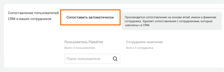 Это необходимо, чтобы системы могли однозначно идентифицировать сотрудников и связанные с ними события. В Pipedrive по умолчанию будут отображаться звонки только сопоставленных пользователей.
