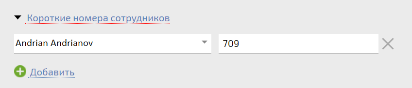 Вернемся в настройки параметров интеграции в ПланФикс и закончим их настройку. Добавьте короткие номера сотрудников: слева выберите сотрудников, заведенных в ПланФикс, справа укажите их короткие номера в Облачной АТС.