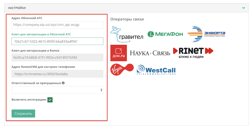 6. Нажмите “Сохранить“ в Облачной АТС, а затем в Ramex.
