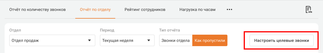 Это успешные вызовы, в которых сотрудники отдела разговаривали с клиентами столько, сколько предусмотрено для целевых звонков. Если в рамках одного звонка было несколько разговоров с сотрудниками отдела, то при определении целевого берется самый длинный разговор.