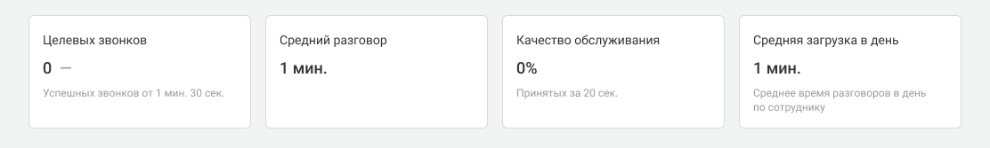 • Средний разговор — не рассчитывается, так как основан на длительности успешных звонков.