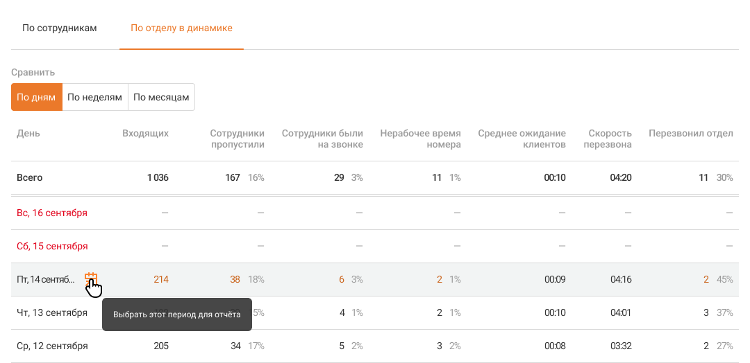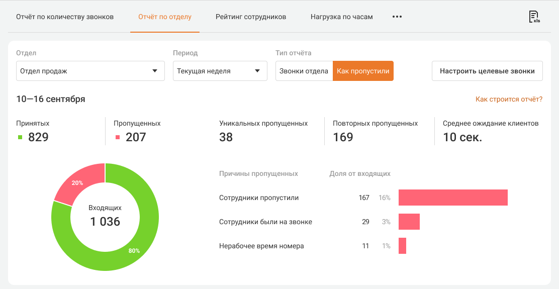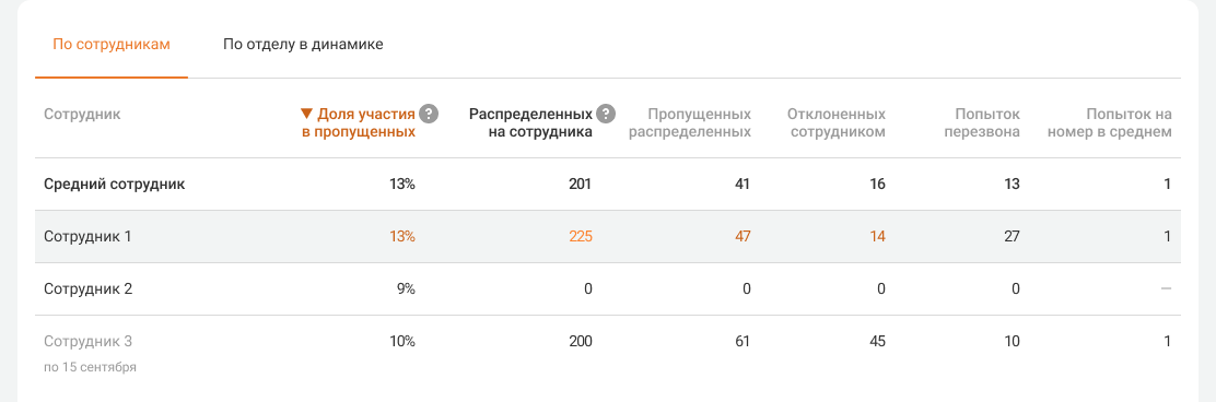 - разбираться, почему звонки в отдел остались без ответа и кто из сотрудников чаще их пропускает.