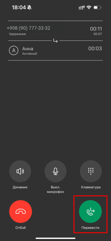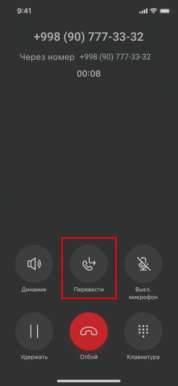 - Нажать «Перевод звонка».