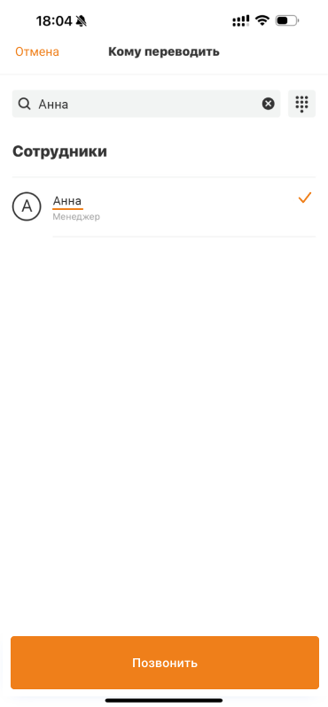 Если вы приняли переадресованный звонок на мобильном телефоне, на котором не установлено приложение АТС, вы все равно можете перевести звонок на другого сотрудника.