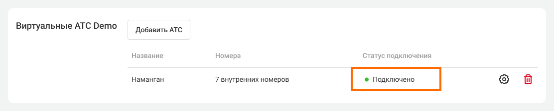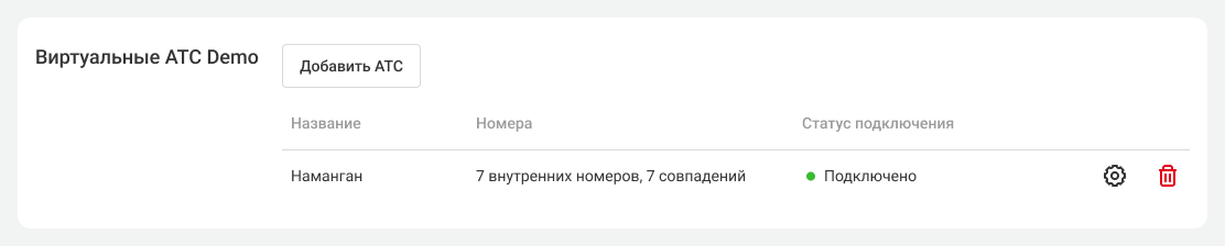 Если вы все сделали правильно, ваши АТС обменяются списками сотрудников и отделов вместе с их короткими номерами. В интерфейсе обеих Облачных АТС статус сменится на «Подключено».