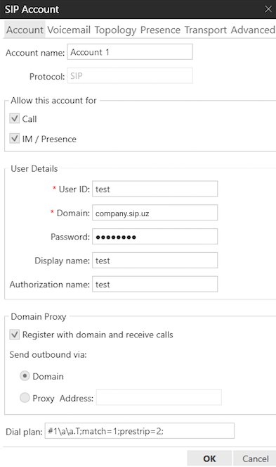 4. В открывшемся окне можно придумать и ввести название аккаунта, ввести имя пользователя, пароль и адрес домена. Нажмите ОК.