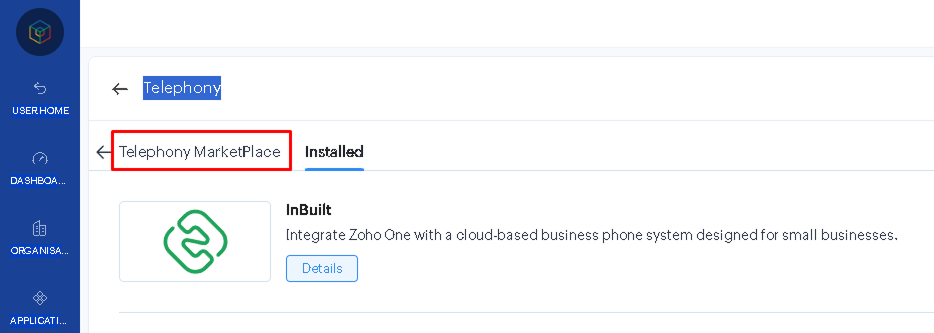 3. Перейдите на вкладку «Telephony Marketplace».