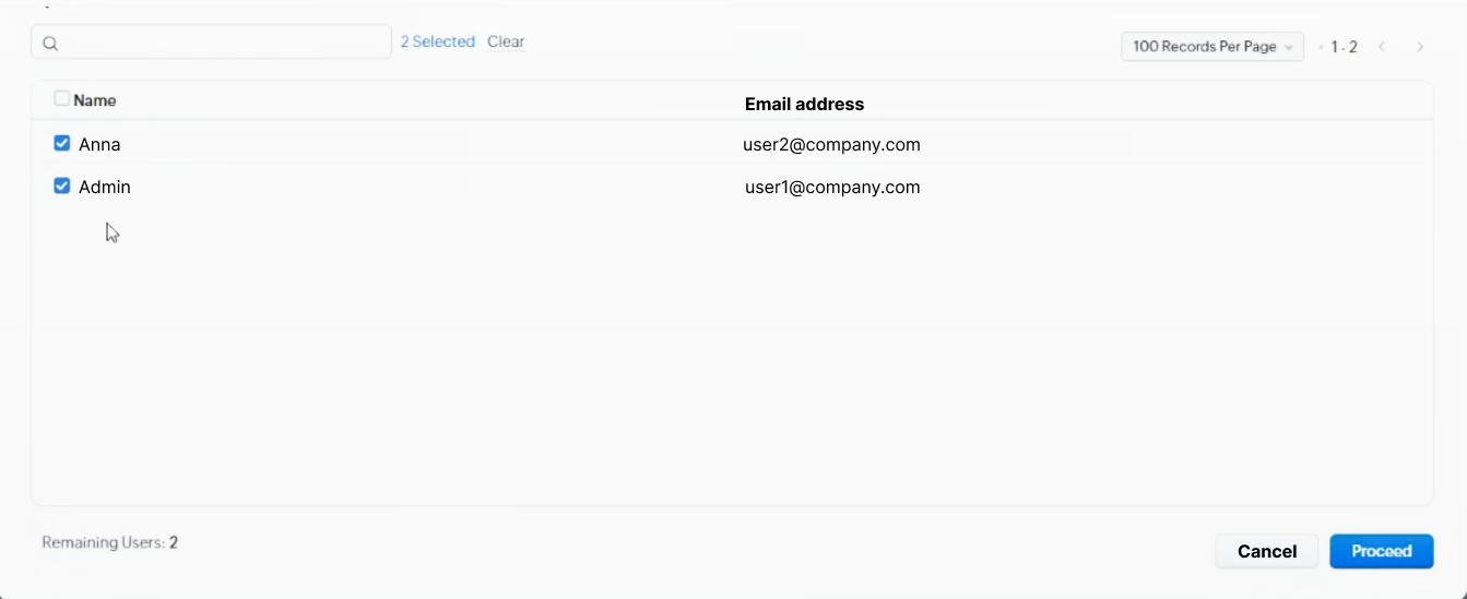 6. Выберите нужных пользователей и нажмите на кнопку «Proceed» внизу экрана.