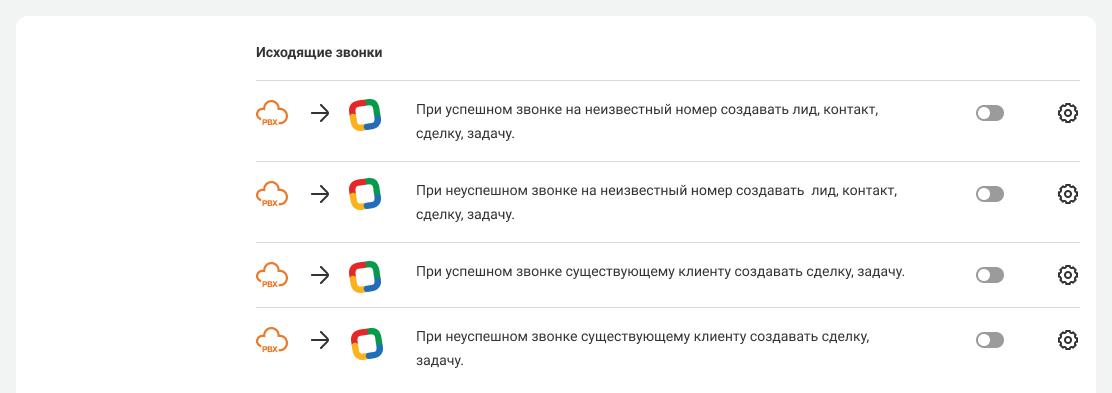 Вы можете настроить сценарии интеграции отдельно для входящих звонков.